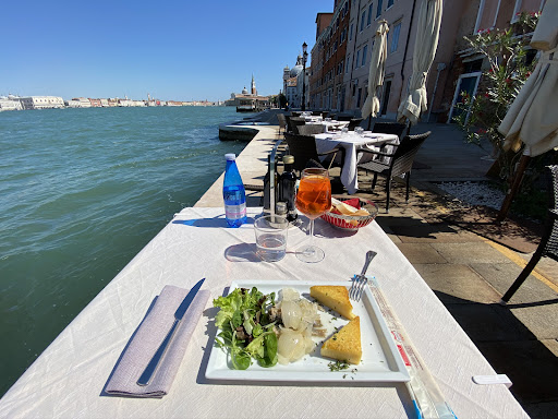 Okay, this was a bitter-sweet experience. We flagged this restaurant before departing Canada and came on our first day, as we read this area was away from the busy touristy Venice and would have better food and prices. The location is FANTASTIC! Right by the water, you see Piazza SAN Marco right across the lagune and the service is absolutely fantastic. One day here in Venice and we can see that service is not a priority here in pretty much all places we have been to. Now the food, I ordered the risotto of the day which was very good. My wife ordered the ravioli with brown butter and sage and this is where we were disappointed. You come to Italy and expect real hand made pasta but these raviolis are the same I buy frozen at home and feed my kids when I don’t want to cook anything elaborated. Finally there was no browned butter or sage, just a cream sauce. In conclusion, I would recommend this place, don’t order the ravioli, I wish I ordered the fish also, they really recommended it as being fresh. They will not rush you at all and you will definitely have...