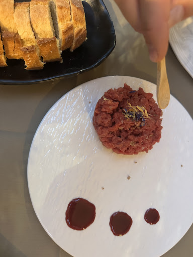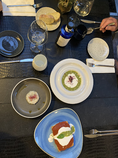Read moreI was torn between awarding four and five stars. I think this restaurant should be a ÂŁÂŁÂŁ rather than ÂŁÂŁ listing as it would be difficult to get a meal for less than âŹ40 a head and that influenced my impression and scoring. Everything I had was good but my main course was more like a starter in size. I only dared to have one glass of wine, aware that each course cost a little more than I expected in addition to the cover charge. In contrast to the sophistication of the cuisine, I found the decor cold and unattractive with everything in shades of green. Coupled with bright lighting it did nothing for the ambiance of the place. So four...