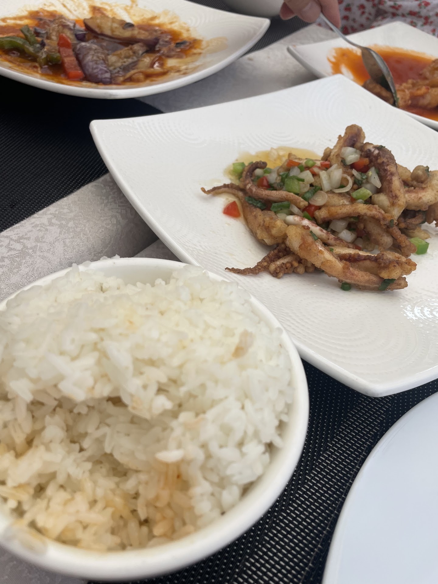The food was mediocre, it was well seasoned but the pork dish was rough and not tender or crispy as it should be, the octopus was also very tough and the aubergine was the only dish which was actually okay.