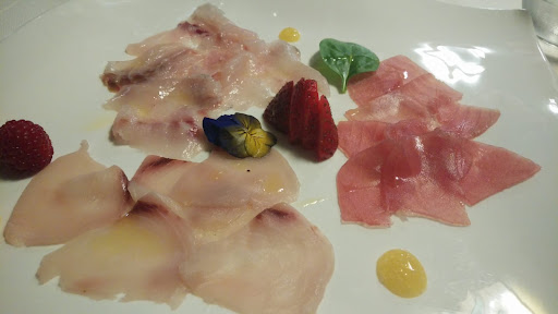 Read moreLocale molto accogliente, ben arredato e spazioso. Tavoli di buone dimensioni e non attaccati tra di loro, così da creare un po' di intimità. Menu vario e invitante, che comprende anche qualche portata di carne. Servizio molto cortese e attento al cliente, molto apprezzato l'entré e il pre dessert. Carta dei vini ben fornita. Il locale ha un giusto compromesso tra formalità e informalità, che rende la cena piacevolmente leggera. I piatti..partendo dal presupposto che la qualità è davvero molto buona, l'antipasto acquario mi è piaciuto, bella idea le 4 varietà di gamberi, ma l'ho trovato un po' scarso, se per i gamberi (4) e gli scampi (2) poteva anche andare, i carpacci un po' miseri..in particolare il tonno e lo spada, che erano talmente fini e in quadretti così piccoli che nemmeno riuscivi ad assaporarli, sufficiente invece il branzino, tagliato in fette più spesse e di dimensione più corretta (la foto nel menu non corrisponde a quanto realmente servito). Il cubotto di tonno, molto bello e ben accompagnato da un buon gelato al wasabi, buona anche come porzione. Pasta alla scogliera, molto buona, ben condita con vongole scambi gamberi e del tonno fresco, anche qui buona porzione. Il napoleon di rombo buono, non abbondante ma porzione sufficiente. Piatto di cappe lunghe e cappa santa, cottura ottima, buona l'idea di non condirle eccessivamente così da mantenere più vivo il gusto della materia prima, 24€ forse un po' eccessivo xò devo ammettere che nelle cappe lunghe il lavoro che c'è dietro è tanto ed è stato fatto molto bene, solo su una ho trovato un granello di sabbia. Frittura davvero ottima, abbondante, varia e di qualità..cotta in modo impeccabile, non unta e bella croccante. I dessert molto gradevoli..molto buoni i gelati così come il tortino al cioccolato. Il conto..4 antipasti, 1 primo, 3 secondi, 4 dolci, 2 acqua, 1 bottiglia (25€) e coperto (3€pp) 225€ Ci sta...se non fosse un po' per la leggera delusione dell'antipasto acquario, sarebbe stato quasi tutto perfetto. Ci tornerò?! non lo...