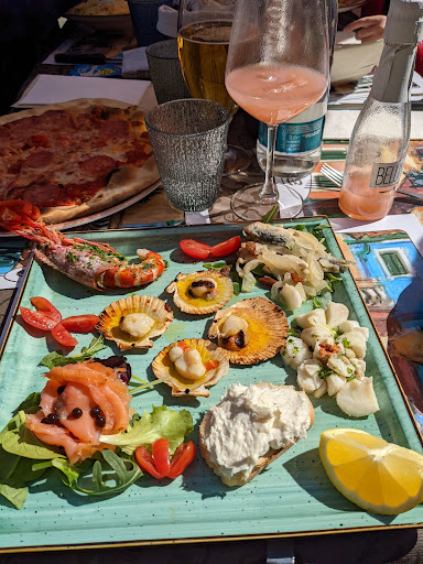 I would say the pricing was fair for such a tourist area, a bit expensive but the food was worth it so we had no complaints for that. The drinks were good but nothing special. The pizza was all devoured. The seafood was definitely the star for me. Service was efficient and prompt. Seating was tight on the outer tables but not unusually so and the chairs were comfortable. The bathrooms were clean if a little cramped (no toilet seats, which is not unusual in Italy) but very much appreciated especially when the public toilet was closed early (4:00 pm instead of 6:00 pm as posted). Inside the building to the front there is a small counter with pastries and snacks that you can pop in and get for a quick take away, also I think you can get canned/bottled drinks and coffee there.