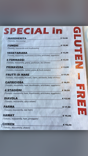Anyway - I have celiac and this place has a pretty good gluten free (senza glutine) menu (see attached pictures) featuring pizza and pastas (of course). The pizza crust was a bit harder than others I've tried in Italy (some of which tend to be really thin and sometimes soggy), but was definitely filling. I ordered a litre of the house white wine for 17€ and also an assorted cheese platter for €15. I wish I would have taken a picture of the food prior to consuming it like an animal.
