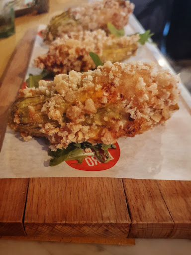 Food was good but our experience was tarnished by the horrible service by the short waitress with put up hair and many earrings. She was unnecessarily rude when the restaurant was not even crowded. She was throwing the plates and dishes on our table while serving and spoke to us so rudely. She did not bring us the basic condiments or plates. We also bought coffee from the cafe nearby of the same restaurant, but she rudely asked us to not drink the coffee at the restaurant. Later her colleague explained that there is a rule to not allow plastic cups in restaurants, which we understand but she could have explained it better instead of scolding us. We were allowed to keep our suitcases on the side, which was great as our train was 1.5 hours later. Our experience just before leaving the beautiful city of Venice was dampened by this...