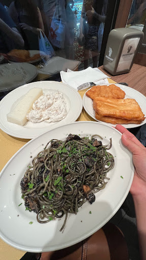 HORRIBLE CUSTOMER SERVICE AND THE SEATING AND ORDERING SYSTEM ISN'T VERY CLEAR. DO NOT COME AND EAT HERE. We went upstairs to find seats and was told very rudely (girl with dark curly hair) that my family of 5 cannot sit down in one table because it was too small. Meanwhile a family of Italians were in another table and guess what? FIVE OF THEM. We were also told that we were not allowed to eat upstairs because we needed to order there to be able to do that. My husband had just brought a plate of risotto that he had ordered downstairs. It was the SAME RESTAURANT WITH THE SAME MENU. The only thing we can think of was that they were priced more upstairs because the service charge is different. The issue could have been easily fixed if they told us that we needed to pay extra and we would have been happy to do that. We suggested as much since we hadn't yet paid. But it was obvious that customer service is lacking and the server lacked the initiative and common sense to solve the problem. The guy who was serving my husband was a bit annoyed that we had to ask for take away containers. However, he did try to work it out when he saw how upset I was over the situation. His attempts were refused by the same colleague, the same rude server, who absolutely refused to do anything about it. As far as the food, the lasagne was soggy and the risotto had very little sea food. The fried Calamari was good. Save your time and money and eat somewhere else.
