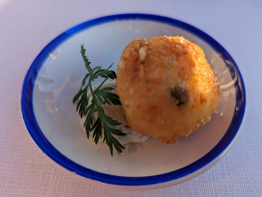 We came back later in our stay for dinner after a long day of sightseeing but this time we sat on the outside patio. The service again was fantastic but this time we got a welcome drink which was delicious and an arancini amuse bouche which again was fantastic. The bread provided was just ok since we thought the crust was too hard but the basket came with some amazing focaccia bread.