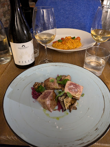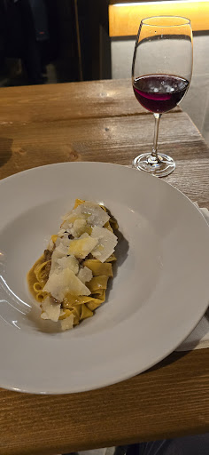 The staff was good and provided some recommendations. But each person has their own rights to what they like which brings me to why I can't give this place higher stars. I ordered pasta and wine: pappaderlle with duck ragu and parmegiano the noodles were amazing! Texture, mouth feel, the chew... Everything that I have never experienced before (first time in Italy but not first noodle dish) Sauce was kind of one noted and I felt like the duck pieces were dry (maybe that's what ragu supposed to taste?). They were small enough (grounded size) that the sauce made it "ok" (bigger pieces were noticeably crumbly) This I have not mentioned in my feedback to the staff, out of the whole dish two bites had something "crunchy" in them and I couldn't figure out what it was (I don't think but possibly salt crystals). This was not expected and unpleasant. Nebbido 2022 red wine - I don't know enough to judge this, but it was "ok"