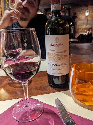 Read moreThis was my favorite dining experience while in Venice. The entrance to it faces the canal, so you have to just meander through a few calles to try to find this place, but I'm glad I did! I was recently in town for Carnevale, and before I left the states, I made a reservation in advance online, which was easy to do. I arrived to the restaurant before my friend did, so in my broken Italian I let them know I had a reservation for 2. I was seated beside the fireplace in this charming old-world establishment. We ordered a bottle of local wine, and without the sulfites of red wines I am used to, my friend and I easily polished off the bottle and also had a few more drinks on top of this with no ill effects the next day :)