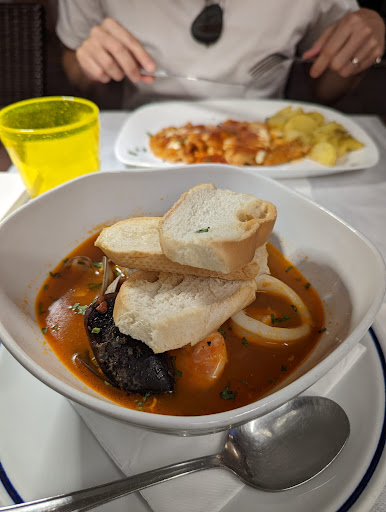 Now sitting for more than one hour and a half, still waiting for our entrées and disappointed with the food so far, we told the waiter we weren't having a good experience and wanted to leave. He insisted that the food was coming immediately, and we decided to stay and give the restaurant the benefit of the doubt. The food came rapidly. Unfortunately, the seafood soup was full of crustacean tails still encompassed in their shells. But, worst of all, the clam in the soup was closed shut (which means it was either dead of full of mud and should not have even been near a plate). We didn't want to risk getting sick and so called it a night.