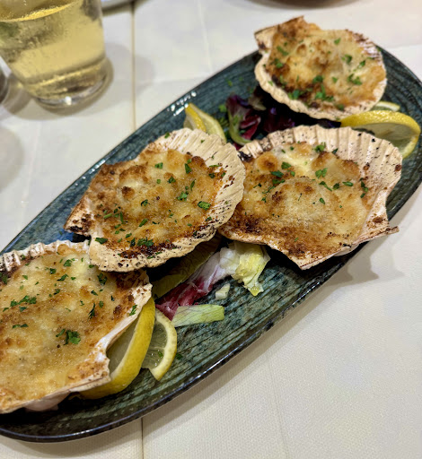 For our starters, my wife and I shared the scallops, and they were delicious. For our mains, the food continued to impress. My wife's pasta was prepared tableside in a cheese wheel, which was a spectacle to watch and tasted even better. I had a unique pasta dish with a pistachio crème and crispy bacon, which was a special recipe from the restaurant and an absolute revelation.