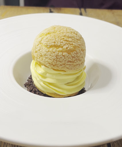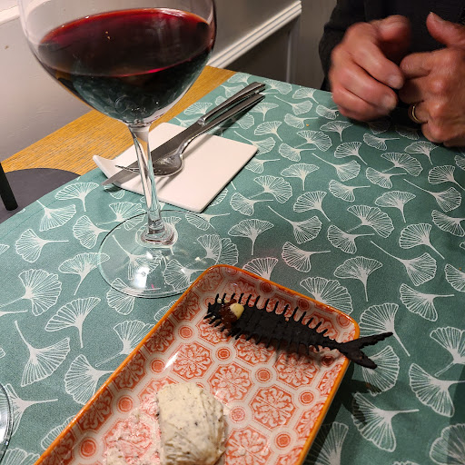 Great atmosphere with contemporary jazz in the background, this fun find is a blend of tradition and innovation, this was the place to move past typical pastas and embrace the chef’s vision. We started out with a fried fish appetizer served with potato foam. The tiny fish were coated with a whiff of breading so they had the slightest crunch. The potato foam was almost like a light mayonnaise. Our main courses were the Cod Ravioli and the Quail with figs and lard. The cod, in an al dente ravioli, was served with a tasty coconut milk sauce. The Quail was flavorful, crisp, and perfectly complimented by the figs. Our server suggested a Venetian Blanco that balanced perfectly with the Cod. We were so intrigued and pleased at this point that we had to have dessert. We chose the Chocolate Craquelin, which was delicious. Resembling a macaron, cafe gelato was in the middle of cream mascarpone, on a bed of crumbled coffee, with warm caramel...