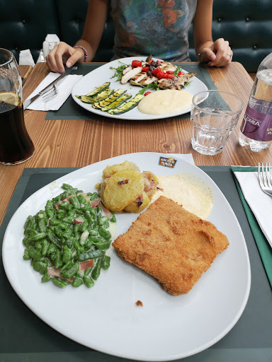 Abbiamo ordinato: delle birre, un tagliere misto € 9,20 crudo San Daniele, cotto Praga, speck, gorgonzola, fagottini di pasta fritti e noci. Un Kaiser Ljubli - Kaiser tris - piatto unico € 10,90: spatzle verdi speck e gorgonzola, noci + Ljublijanska cotoletta di tacchino panata, farcita con cotto Praga e formaggio Gouda, patate arrostite alla contadina con cipolla e pancetta e salsa Wiener. Un Piatto alla griglia Dolomiti € 12,20 coppa maiale, wurstel Berner con formaggio ed avvolto nella pancetta, salsiccia, Bretzel, patate rustiche Dippers, salse senape, ketcup e Wiener. Totale € 40 circa.