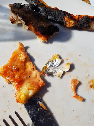 Read moreAwful experience! Firstly, the waiter emptied an ashtray from the table behind us on to the beach, and the ash (and it was a huge amount of ash!), completly covered me, my partner, our dinner, entered into our drinks; when I called to him he simply blanked me and walked away! Secondly, while eating my meal I noticed something in the pizza. After scraping away I uncovered a piece of foil (see picture). Thirdly, we asked for oven baked potatoes with the fish but got frozen fries. Fourthly, the table cloth was covered in ketchup which was not pleasant to sit at to eat. In addition, the hanging basket next to our table contained a dead plant and multiple cigarette ends. A real shame as the setting is beautiful and this could be an amazing place. There's a Michelin star restaurant a few metres away and next time I visit I'll be sure...