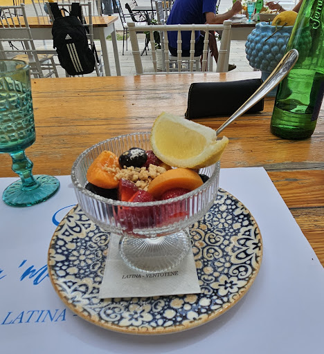 Read more…… ci ero stato tante volte a pranzo e cena molti anni fa quando con la ns. scuola sub facevamo immersioni a Ventotene, per cui dopo una mattinata di lavoro, i primi giorni di agosto, non ho avuto dubbi e ci siamo fermati a pranzo Prima si mangiava solo in tavoli agli angoli esterni del locale x strada; invece, devo dire che il pergolato di vite americana è proprio ideale a lato dx della piazza, amorevolmente apparecchiato con tocco muliebre Dobbiamo tornare presto in cantiere x cui ci facciamo portare una insalata di mare da spizzicare con un buon pane e dei tarallini ed un buon primo, alle vongole espressamente senz’aglio, lo odio e paccheri alici pomodorini e finocchietto Decisamente ben fatti, legati bene e saporitissimi Un freschissimo pecorino biologico ci accompagna nel pasteggiare Saltiamo il secondo, ma non ci facciamo mancare il dessert, aragostina con crema chantilly e una sbriciolata sempre accompagnata da fresca crema chantilly Caffè e ammazza caffè Ci torno sempre con piacere, la prossima volta spero di ritrovare il conto di una volta, un po’ più calmierato, il mio voto purtroppo ne ha dovuto...
