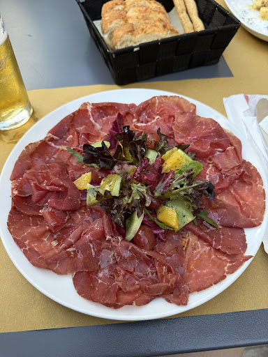 Read moreAbbiamo pranzato domenica 16 dicembre 2024. La cucina di un menù essenziale è ben curata, di tradizione regionale e la scelta che abbiamo fatto si è rivelata felice. Non mancano i buoni vini da degustare. L'ambiente è piccolo ma l'atmosfera è piacevole. Assaggiare ottimi pinot grigio o nero è d'obbligo quando sei in questo locale. L'osteria si trova all'interno dell ’edificio più antico del borgo di Venzone ed è stato edificato nell’XI secolo in stile romanico. È ornato da bifore in bassorilievo, tipici finestroni di abbellimento divisi da una colonnina usati per lo più nei periodi romanico, gotico e anche rinascimentale. Abbiamo riscontrato gentilezza e cordialità da parte dei gestori. A disposizione, durante l'attesa delle pietanze, guide, libri e depliants illustrativi del posto e della cittadina. Se passate da Venzone, fatte una tappa in questa osteria, anche solo per assaggiare le diverse qualità dei vini. Bravi,...