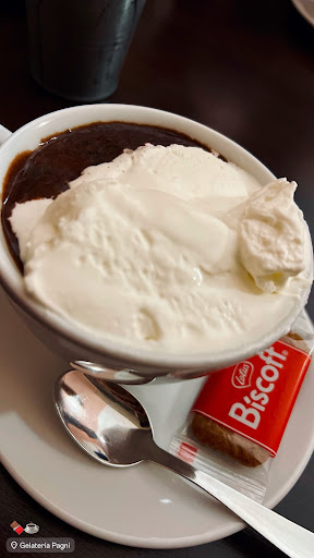 Read morePreso oggi pomeriggio un cono con gianduiotto e crema (2.80€) e aggiunta di panna (che costa ben 1.00€, ma visto che è una gelateria famosa per la sua panna fresca ero curiosa di provarla). Gelato piuttosto abbondante e molto gustoso. La consistenza dei gusti mi ha ricordato quella di quando ero piccola: sia chiaro non ho 90 anni come questa storia gelateria, ne ho 25, ma penso che negli ultimi 15 anni il mondo del gelato si sia evoluto molto, spesso in positivo certo, ma altre volte finisce per rincorrere questa "sofficità" e scioglievolezza al palato per far vedere a tutti i costi la tanto decantata artigianalità. Alla gelateria Pagni invece non c'è spazio per le mode. Sembra davvero un posto "come una volta", con i tavolini per sedersi, la caffetteria, l'ambiente bello "old school" ma per niente trascurato, e pochi gusti (i classici). Panna...