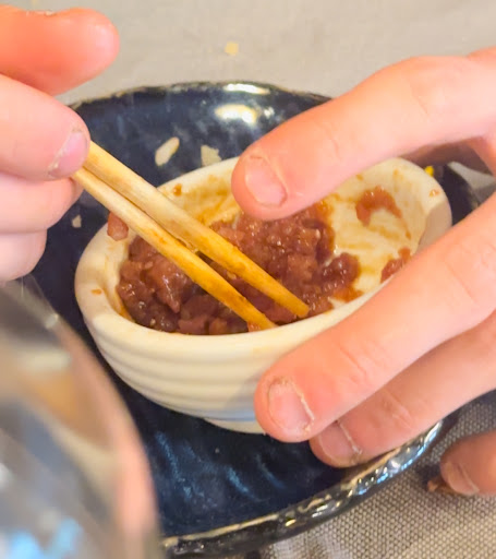 Confesso di aver apprezzato abbondantemente la raffinata cucina, in cui la qualità del pesce si è espressa distintamente nel gusto. Da estimatore del wasabi, ho gentilmente richiesto una porzione. La mia richiesta ha suscitato la domanda del cameriere: "Desidera la versione piccante o no?". Inizialmente confuso, ho optato per il wasabi piccante. Solo in seguito ho realizzato che non si trattava del consueto wasabi, ma il wasabi proveniente da una radice vera e propria. Un chiarimento con il cameriere ha confermato la mia osservazione. Questo evento mi spinge a concedere un punto extra per la qualità del cibo: 9+1 (per il wasabi)/10.