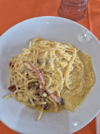 Location: interni molto, forse troppo arancioni, da appuntare anche i numerosi quadretti raffiguranti santi e divinità che hanno il magico potere di farti sentire in colpa per il tuo non andare in chiesa da circa sette anni. L'esterno offre una deliziosa vista su un fantastico distributore di benzina e, se non c'è nebbia, possiamo scorgere addirittura un decathlon. La posizione non è delle più centrali, è collocato nella periferia di Vercelli, sopra un negozio di animali, fattore che purtroppo penalizza molto la pizzeria. In totale assegno alle location un bel 2/5. Servizio: impeccabile! Appena entrati ci è stato assegnato un tavolo, ma vista la nostra passione per Re Artù, abbiamo richiesto un tavolo rotondo. I nostri desideri sono stati esauditi immediatamente senza nessuna lamentela. Da sottolineare anche il servizio di raccolta e sostituzione di posate, che definire istantaneo sarebbe a dir poco riduttivo. In totale quindi regalo a questa categoria un bel 5/5! Menù: abbiamo ordinato tre pizze e una focaccia e sono risultate tutte e quattro buone! Nulla da appuntare, forse la 4 formaggi assomigliava un po' a una zuppa, ma era lo stesso una pietanza squisita! In totale quindi do un 4/5. Conto: abbiamo speso 10 euro a testa, quindi reputo i prezzi del locale molto validi e gli conferisco un bel 5/5! In totale quindi reputo questo ristorante/pizzaria altamente promosso con una media di quattro su cinque! Da Alexandra borghese è tutto ci vediamo al prossimo episodio di...