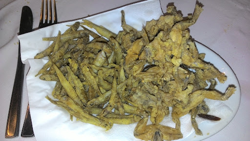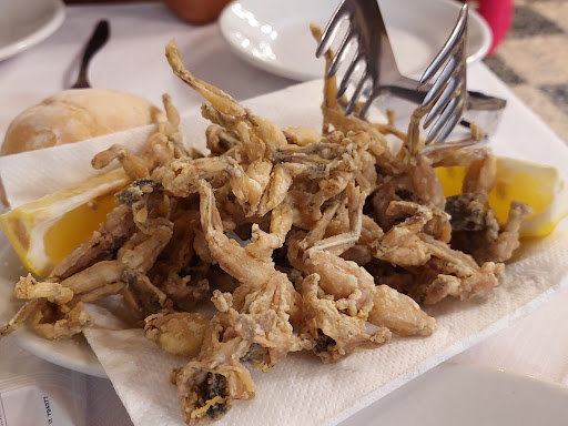Luogo molto triste e scarno. La qualità del cibo mediocre e senza nulla che ti sorprenda. Siamo andati pieni di entusiasmo perché amiamo le rane fritte e le lumache ma appena entrati abbiamo già avuto una accoglienza raggelante. Seduti al tavolo arriva il gestore che non ci porta un menù ma a fatica ci dice di qualche portata. Stessa cosa per il bere. In qualche modo ordiniamo rane fritte e lumache. Arrivano delle porzioni da ospedale. Rane freddine e lumache così piccole che non si bloccavano nemmeno con la pinza apposita. Il vino bianco servito con bottiglia sul tavolo senza un accenno di assaggio e senza versarlo nel bicchiere. Abbiamo anche dovuto chiedere un secchiello con ghiaccio appositamente. Ok, pensiamo, sarà un luogo basico e almeno il conto non sarà elevato. Già… la speranza è l’ultima a morire perché 105 euro di conto ci hanno avviati ad una difficile digestione. Una follia: 2 piattini di rane, 2 di lumache da 6 ciascuno, un vino bianco non meglio identificato, una porzione di patatine e due fettine di torta per “soli” 105 euro in una trattoria malmessa e sperduta nel...