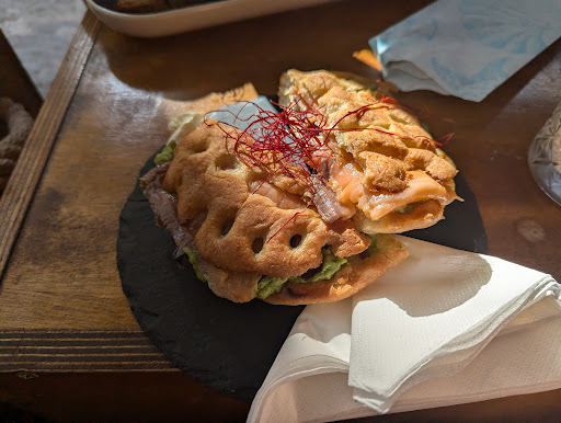 Read moreOne word - FANTASTIC!! The food was one of the best, if not my favorite in Northern Italy. The foccacias with mozzarella, pesto and tomatoes were splendid and so tasty (these on the picture are the biggest size). We also tried the pinsa diavola and oh my god. It had hands down THE BEST tomato sauce, that I will dream of untill I return (no picture because we finished it too soon). Really fair prices and quick and good service. I will come back one day for sure, and recommend it to everyone. Please do me a favor and eat one (or ten) of their pinsas, they are totally worth their price. Also - no...