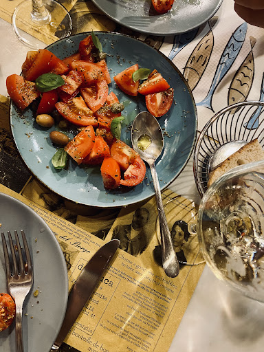 Dinner with a friend, after a long day hiking through the Cinque Terre. I’d taken a moment to freshen up — cleaned up nicely, felt a bit more presentable, maybe even a little more appetizing. We stepped out into the quiet beauty of Corniglia, that golden evening glow settling over the village, and then I saw it: a small ristorante tucked away, with recycled-material sculptures lining the entrance and a barely visible sign that read “Best Hospitality 2025.” That was it. I spotted it, and I knew — that’s where we’re eating tonight. We booked the 9 PM shift (of course, we’re from the south — we eat late). When we arrived, it was just in time for the second seating. The place was buzzing with life. We were seated next to two other couples, and quickly hit it off with one of them. The staff didn’t miss a beat — the waitresses welcomed us right away, seating us, joking with us, making sure everything felt just right. It took me a moment to understand how their service rhythm worked — there’s definitely a method to the madness — but once I caught on, I saw how well it flowed. Fast, efficient, and full of energy. And the team inside? Amazing. These women spoke practically every European language under the sun, always smiling, laughing, joking with guests. There wasn’t a hint of stress in the air — just a light, authentic, typical Italian vibe. That’s the word I’d use for this place: typical, in the best way. Warm, welcoming, full of personality. The black-and-white photos of old Corniglia on the walls, the homey décor — it’s exactly the kind of place you want to end up in after a day on the trails.