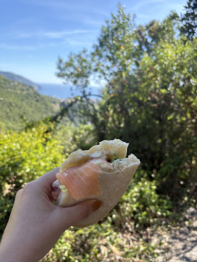 Awesome sandwiches. We didn’t get the enjoy the luxuriously located patio — such a hidden gem in Corniglia which, as a town is the hidden gem of Cinque Terre. We took two sandwiches to go hiking to Vernazza with. We took the mozzarella-pesto and the salmon-mascarpone, respectively. Salmon was fantastic, fresh and delish but not new for where we come from. For us, the local highlight was definitely the simple mozzarella and pesto. Perfect bread. Held its integrity well. We split the first sandwich at the halfway mark of the hike and the second sandwich when we arrived to Vernazza. Truly a wicked spot and the service was top notch.