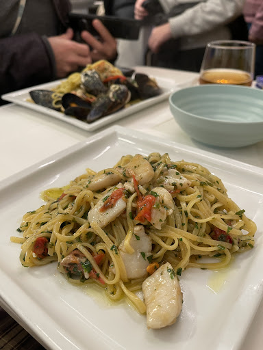 Read moreSuper tiny restaurant with stools for 10-12 people. If you have back issues, it can be hard to sit in these small stools. The chef was friendly and funny. We ordered fried mixed seafood, tuna sandwich and pasta with clam and shrimp. The fried seafood was just ok but the pasta was really good. Seafood was cooked perfectly with a savory broth that you can mop up with some bread. The sandwich was also delicious with a generous portion of fresh tuna. Our friends who were there also liked their dishes. Overall it was a very good meal. When we got the check we found we were erroneously charged for wine and water, when I brought it to the attention of the server she argued at first and we had to explain we donât drink any alcohol due to religious reasons before she refunded me the âŹ6 for wine but not the âŹ1.50 for the water. I am sure it was an honest mistake but it was weird that she didnât recall our order when we are one of the 3 parties in the restaurant and didnât believe us when we mention the mistake. Regardless, itâs always a good idea to check...