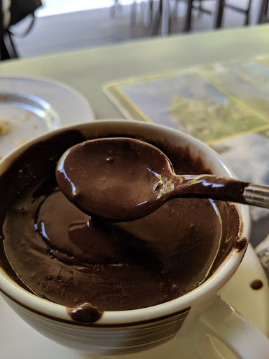 We saw this restaurant while taking and evening walk and after reading all the reviews we couldn't resist trying it. Their hot chocolate was amazing. It tastes like real chocolate, creamy and delicately sweet. I've tried to make a lot of hot chocolate recipes at home using the best ingredients I could find but I was never able to get the same consistency and delicious taste. You could tell that it was made with quality ingredients, not a cheap hot chocolate mix. We also got a Panna Cotta with fruits which was very good. The owner was very kind and fun to talk to. When we came again in the morning, we got croissants fresh out of the oven and a lot of pastries with coffee. The croissants were still warm and very buttery and flaky. Some of the reviews said the food was overpriced but it really wasn't. The cost might have been a little higher than in other places but the quality of the food was a lot better than anywhere I've been before. The food was amazing and I regret finding this place so late in my trip, otherwise we would be eating...