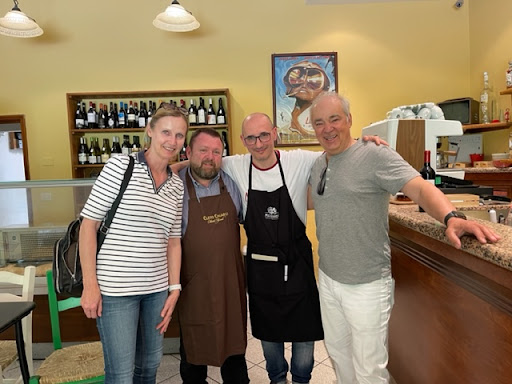 Auf unserer Vespa-Tour durch die Toskana wurden wir plötzlich hungrig und hielten nach einer geeigneten Esserei Ausschau. Folgende Such-Erfordernisse: Viele lokale Autos vor dem Platz, ein etwas rundlicher Padrone und lächelnde Gäste und Platz zum draußen Sitzen. Vecchia Spugna erfüllte diese Kriterien im Vorbeifahren. Vespa abgestellt und hervorragend von Gianni und Filipo kulinarisch beraten und verwöhnt. Erst seit kurzem eröffnet, in familiärem Rahmen gehalten und qualitativ hochwertige Zutaten auch bei einfachen Gerichten. Imposante Weinkarte - Gianni ist Sommelier - bei vernünftigen Preisen. Auch der Hauswein, ein Perolla, kann sich schmecken lassen und wird aus der Flasche ausgeschenkt - zumindestens bei uns. Gianni ist Vespa-Fan und dadurch hatten wir bei ihm einen Stein im Brett. Nächstes Mal möchten wir die mit Kartoffelbrei gefüllten Teigtaschen mit Wildschwein-Ragout probieren, bzw. seine Hirschgerichte - Spezialität der Gegend. Ein unvergesslicher Mittagstisch bei Gianni und seiner Crew -...