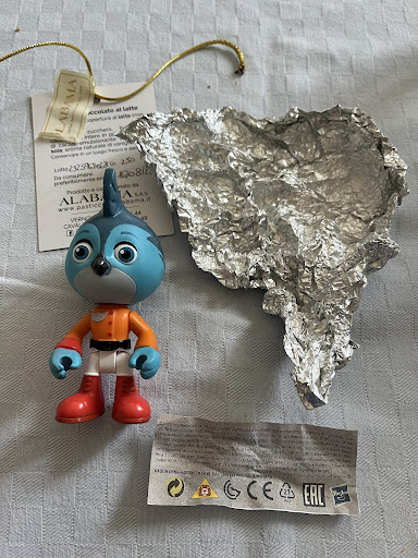 Ho scelto di acquistare l’uovo di Pasqua Alabama artigianale piuttosto che industriale, nella speranza che fosse più buono qualitativamente parlando. È stato una delusione… Apparentemente sembrava bello, poi una volta scartato ho trovato l’uovo impellicolato, sicuramente perché il cioccolato non è stato temperato bene. E all’interno la “sorpresa” è avvolta nella carta stagnola. E sicuramente è stato un “riciclo” in quanto manca anche la base del giocattolo. Inoltre ho anche notato che il foglietto allegato alla sorpresa è fotocopiato su un foglio bianco. E, infine e non per importanza anche la qualità del cioccolato, non...