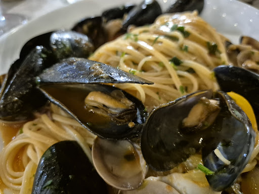 Abbiamo scelto di ordinare due primi piatti: delle linguine allo scoglio, preparate con maestria e ricche di sapore, e un antipasto di frittini misti, anch'essi di ottima qualità. La bellezza del giardino, insieme alla qualità dei primi piatti, rappresentano senza dubbio il punto di forza di questo ristorante.