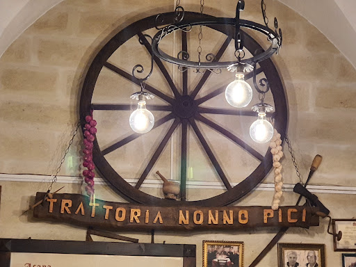 Read moreLa trattoria Nonno Pici è stata una piacevolissima scoperta.Ieri sera io e mio marito abbiamo cenato e siamo stati molto soddisfatti. Ottimo il servizio ,il cameriere è stato molto cortese e lo ringraziamo ancora per averci trovato un tavolo e permesso di cenare alle 19.45 !!Buonissimo l'antipasto Nonno Pici ,gradito il pane casereccio ,quello nostro salentino che non tutti i ristoranti hanno (purtroppo)! Ottima la grigliata di carne che ha preso mio marito! Ottima e succulenta la mia tagliata con rucola e grana! Ci è dispiaciuto non poter finire tutto il piatto ma le porzioni erano davvero tanto generose che è stato impossibile mangiare fino all'ultimo boccone. Complimenti a tutti e grazie per aver accompagnato la nostra cena con una piacevole musica sottofondo in un locale confortevole del bellissimo...