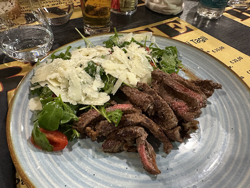 Read moreIl locale si trova sulla strada nazionale che collega Verolengo a Crescentino. A disposizione un ampio parcheggio che offre la sicurezza di trovare posto. All'entrata qualche tavolino esterno e una piccola area giochi per i bambini. Le norme Covid sono rispettate, si entra pochi per volta attendendo il proprio turno e si viene accompagnati gentilmente al tavolo. L' ambiente è conviviale, il personale giovane e simpatico e si danno tutti un gran da fare. Si può mangiare una buona pizza oppure optare per il piatto forte del ristorante, la carne. Grigliate miste, Hamburgher, tagliate, fiorentine, costate, si può scegliere di fare anche il giro carne in stile all you can eat. La carta dei vini non è molto ampia ma ci sono buone etichette con cui accompagnare le carni grigliate. Per gli amanti della birra, se siete dei buoni bevitori vi consiglio il boccale da 2 litri 👍🍺 I prezzi...