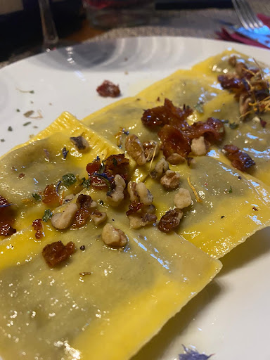 È situato di fronte al Duomo di Sant'Andrea e a due passi dal Palazzo Comunale, nella centrale piazza Mazzetti che è il "salotto buono" della cittadina. Vi siamo andati a cena un paio di volte durante il soggiorno a Veroli. Bisogna prenotare onde evitare di non trovare posto perché d'estate tutti vogliono stare all'aperto e i tavoli non sono tantissimi. Cortesia, servizio veloce, discreta scelta tra le portate (purtroppo un paio, in elenco, non ordinabili perché non disponibili, perlomeno nelle due volte provate). Cibo fresco e curato nella presentazione. Tutta l'area è veramente il cuore storico di Veroli: qui sorgeva l'antico Foro Romano e, ancora più in antico, vi era un insediamento ernico, come abbiamo potuto vedere tramite una visita guidata della Proloco, che partendo dal Museo Archeologico si insinua nelle profondità del sottosuolo dove giacciono le meravigliose testimonianze della Veroli più antica. Piazza Mazzetti è isola pedonale (altro punto di forza perché non si è disturbati dal traffico), quindi è consigliabile lasciare l'auto fuori delle Porte urbiche (la più vicina è Porta Romana) e raggiungere il locale con una passeggiata attraverso l'incantevole...