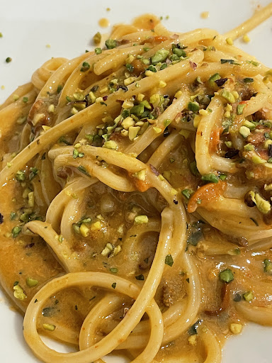 Spaghetti fritti come benvenuto freddi,sciapi e gommosi. Lo staff ansiolitico, della serie scelgo io per voi. Antipasto misto, non era il massimo. Branzino al forno, spinato da un macellaio, al posto del filetto nel piatto sono finiti i pezzi di pesce. Eccessivo per due, ma tanto quando si tratta di vendere è tutto ammesso🤦 quando hanno preso la comanda non hanno specificato che potevano sfamare una famiglia. Dopo 15 minuti ho chiesto la carta dei dolci, il cameriere schifato ha esclamato: -non lo finite? Ho contato fino a 100, con calma e sorriso ho ribadito di portare la carta dei dolci. Si è avvicinato un ragazzo giovane, ci ha esposto i dolci, molto garbato e dolce, gli ho chiesto se fosse cambiata la gestione, anni fa ero cliente fissa e molto soddisfatta a distanza di anni direi che la Domus Hernica non è più quella di una volta. Mi spiace ma non è stata una bella esperienza, soprattutto quando pagando ti ritrovi sorprese...