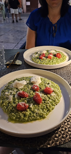 While the restaurant is in a beautiful part of Verona and the waiter who greeted us was kind, our overall experience was very disappointing. After we were seated, a woman—dressed in a black turtleneck and blazer—came over and placed two menus on the table without speaking.