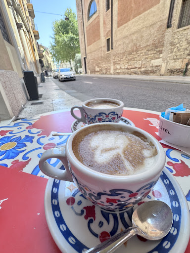 I recently visited Verona, Italy, after traveling through Rome, Florence, and Venice. I tried many different cafes along the way, and although the cappuccinos were pretty good in many places, they were mostly on the lighter side. I like my cappuccino to taste like coffee, not like milk, and the cappuccino here in Verona was the best I've had so far.