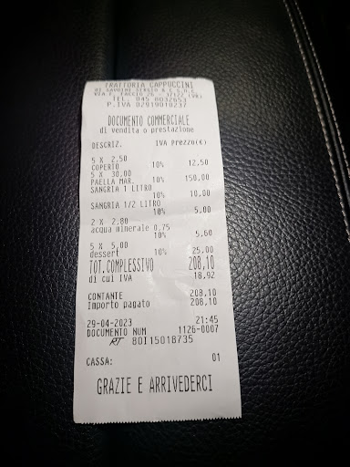 I visited the Cappuccini with a group of friends on Saturday. We were greeted at the door by the owner who was incredibly polite and composed despite the restaurant being completely full with people. We were brought to our table where you could look out the window across the Adige and see the city. The service was incredibly fast; we had to pre-book as the paella, the restaurants specialty, takes some time to prepare. My Girlfriend recommended the vegetarian paella and the paella mariscos which is more typical type with seafood. Both were absolutely incredible, the socarrat or overcooked rice at the bottom being the best part. We ordered some sangria for the table which went amazing with the food. We couldn't believe, the owner even offered another free round of sangria with the bill. We'll be sure to book a table the very first night we visit Verona again. Thank you to all the staff for such an...