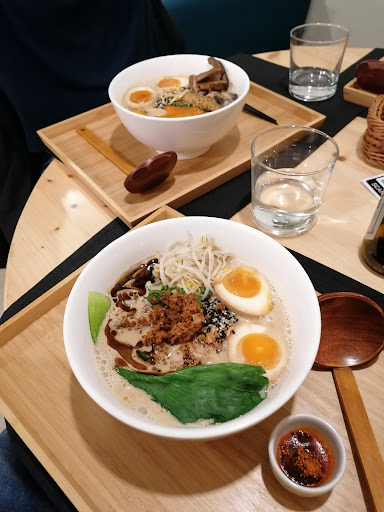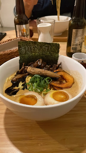 Di solito faccio sempre le foto ai piatti ma questa volta ero talmente curiosa di assaporare i vari piatti che mi sono completamente dimenticata di fotografare. Il posto è super moderno, pulito e tutto in perfetto ordine, è consigliato prenotare per tempo perche comunque il posto è piccolo, il quale è un bene perché si riesce ad avere una certa privacy tra i vari tavoli. I menu di den Ramen cambiano in base alla stagione invernale e estiva (infatti sicuramente tornerò per la stagione estiva ). Per antipasto ho preso i gyoza e in realtà ero convinta fossero di carne invece era completamente vegetale, sono rimasta piacevolmente stupita. Il piatto di ramen viene servito con bacchette e mestolino ed è semplicemente sensazionale, si sente che dietro c'è una ricerca e non è il classico ramen, per di più tutto vegetale. In fine dolce con bao ripieno di crema alla nocciola, direi spettacolare! Complimenti al cuoco Federico e Debora che è stata bravissima a spiegare e a consigliare. Almeno una volta nella vita bisogna assolutamente passare da Den Ramen...
