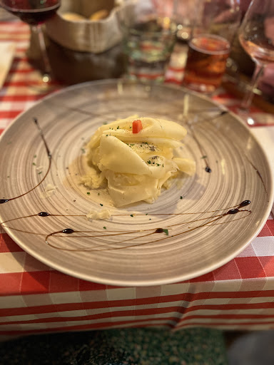 Read moreThe food is superb! Best meal in Italy so far! My favorite course was the savory pear pie - I never had anything like that before! My husbandâs fettuccini with rabbit ragu was equally amazing, with a unique roasted flavor. The waiter eventually warmed to us (after our entrance at 15 min. before closing), and he offered a bowl of plain macaroni for our daughter, which was a hit. Bread is nothing special, so that was easy to pass up, but we didnât care. House wine pour of both red and rose was generous and delicious. Great homey atmosphere. Casual...