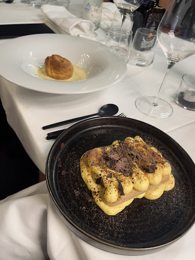 Read moreChe bella scoperta!. Appena entrati, per il pranzo, ci hanno colpito l'arredo, i suoi colori, l'ordine, i dettagli del locale, la luminosità, tutto. Poi l'accoglienza della gentilissima Signora, di cui, con rammarico, mi dispiaccio di non aver chiesto il nome, ma rimedierò alla prossima occasione perché volentieri, tornerò. È stato un piacere colloquiare con lei, donna attenta, garbata, delicata, simpatica e con un bel sorriso che conquista. Abbiamo provato il risotto all'amarone, i bigoli allo stracotto di cavallo, l' ombrina miquit, un paio di contorni ed infine il tiramisù, ma prima ci è stata portata la loro amuse-bouche, davvero notevole, a base di zucca, miele, e non solo, notevole davvero. Giusti i tempi di attesa, ottima la qualità dei prodotti freschi e la loro lavorazione, tutto preparato al momento e, di fatti, le consistenze e le cotture erano top. Bello vedere i giovani cuochi "all'opera " data la cucina a vista. Non da poco il dettaglio delle lampade infrarossi scaldavivande che venivano accese nonappena il piatto toccava il pass, non importa se anche per pochi secondi: questa è professionalità e attenzione ai dettagli, bravissimi. Non posso pubblicare le foto dei piatti perché, come garbatamente sollecitati ma non costretti affatto a fare , abbiamo lasciato " in custodia" i nostri cellulari per goderci il pranzo tra una chiacchiera e l'altra e con tanto di " premio" per averlo fatto, un calice di bollicina gentilmente offerto. Porzioni assolutamente generose. In ultimo, una sorpresa inaspettata, la vincita di una cena per due per aver pescato, tra quelli offerti, un gianduiotto col cartoncino ( in cui era avvolto), vincente. Che cosa...