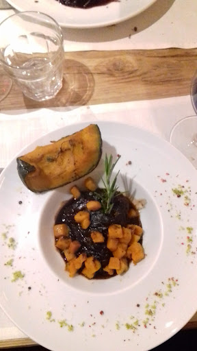 I have mixed feelings about this place. The place is cute (we dined in the upstairs room because they haven't told us that the enoteque downstairs was closed on sunday evening) but the tables are too close, basically I had to sit on others' people table in order to pass through so it was embarassing. I have to say that the waiters and waitresses were very kind. The wine was good. Food: We took one starter in two and it was delicious, with a bit too garlic I think (tartare) As primo we both took risotto all'amarone and that was delicious. As secondo I took a guanciale and it was good, I would say 9/10. My boyfriend took a steak and asked for it to be "al sangue" but when they served it he realised it was medium so he was very disappointed. So in conclusion that plate was not good and the meat was a bit too crusty on the outside. As a dessert we took one with white chocolate (delicious) and one with dark chocolate and red fruit (too heavy).