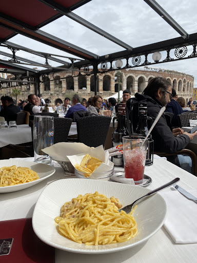 Had dinner here near the Verona Arena and overall, I was pleasantly surprised. I ordered the carbonara, which cost €16 — a great price, especially in Verona where it’s hard to even find carbonara on the menu, let alone for that price. And it was delicious, honestly worth every euro. The atmosphere was also lovely — you’re sitting right by the Arena, which really adds to the vibe.