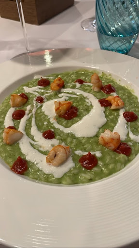 I solo dined at the bar ordering the six course tasting menu. You get to choose your courses from the a la carte menu and they portion each course appropriately. At 59 euro for six courses i think this is one of the best values i have ever seen in a restaurant of this quality. It was a meal of surprises and discovery. The two starters, zucchini blossom and the chickpea cake were both 10/10. A symphony of flavors and textures but still true to the ingredients and not at all fussy or precious. The maccheroni was a miss for me, the only false note. The surgeon excellent, and then the strong finish with the saffron parfait. Possibly the most memorable dessert ive ever eaten. In fact i booked a reservation for the following night so that i could taste more of the menu and do a repeat of the saffron parfait. I also discovered a new favorite red, Valpolicello ripasso, a red wine that has two separate fermentations. Highly drinkable medium bodied fruity incredible bouquet. I immediately ordered a case on vivino. The second night was equally excellent; saffron risotto excellent, pork shank too. The adorable young waitress comped me a taste of the famous regional wine amarone to go with the pork. I enjoyed being in the same space as all the bustling young energetic chefs plating the dishes. I just wish my view wasnt blocked by the wall at the bar. It seems this was deliberate to give the diners separation from the prep area but i would have preferred to have had an...