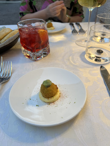 Read moreWe came here following the very good reviews, after few days exploring the incredible food scene of Verona. Our experience didnât started well as nobody was here to welcome us when we came in (a detail but never a good start). We have been brought to the upstairs room which lacks of warmth, itâs a tall roof so the noise coming from a 10 people table was amplified and we needed to elevate our voice to be heard. Unfortunately we didnât like the service. Our waiter was not attentive, walked away few times to see other tables while we were talking to him, didnât care about what we were saying about our wine taste, so we ended up drinking what he wanted, not to our taste. Food wise, it could be good, but details are failing. The spaghetti all vongole were tasty but crunchy (extra sand included). We ordered the wild fish of the day. We havenât been informed of the weight and ended up paying 100 euros (for 2) for a fish which was really good, but that we felt really overpriced for the quantity we had to eat. The fish service was clumsy and we had to remove all the fish bones from it. It was served without sauce, and only with a bit of chicoree salad, and olive oil (good discovery fish/olive oil). The tiramisu disappointed us as well. It was unfortunately our least favorite experience in Verona. Maybe itâs made for locals for a change of food scene with a fancy touch, but to make it work, we feel the details should be more considered. It was...