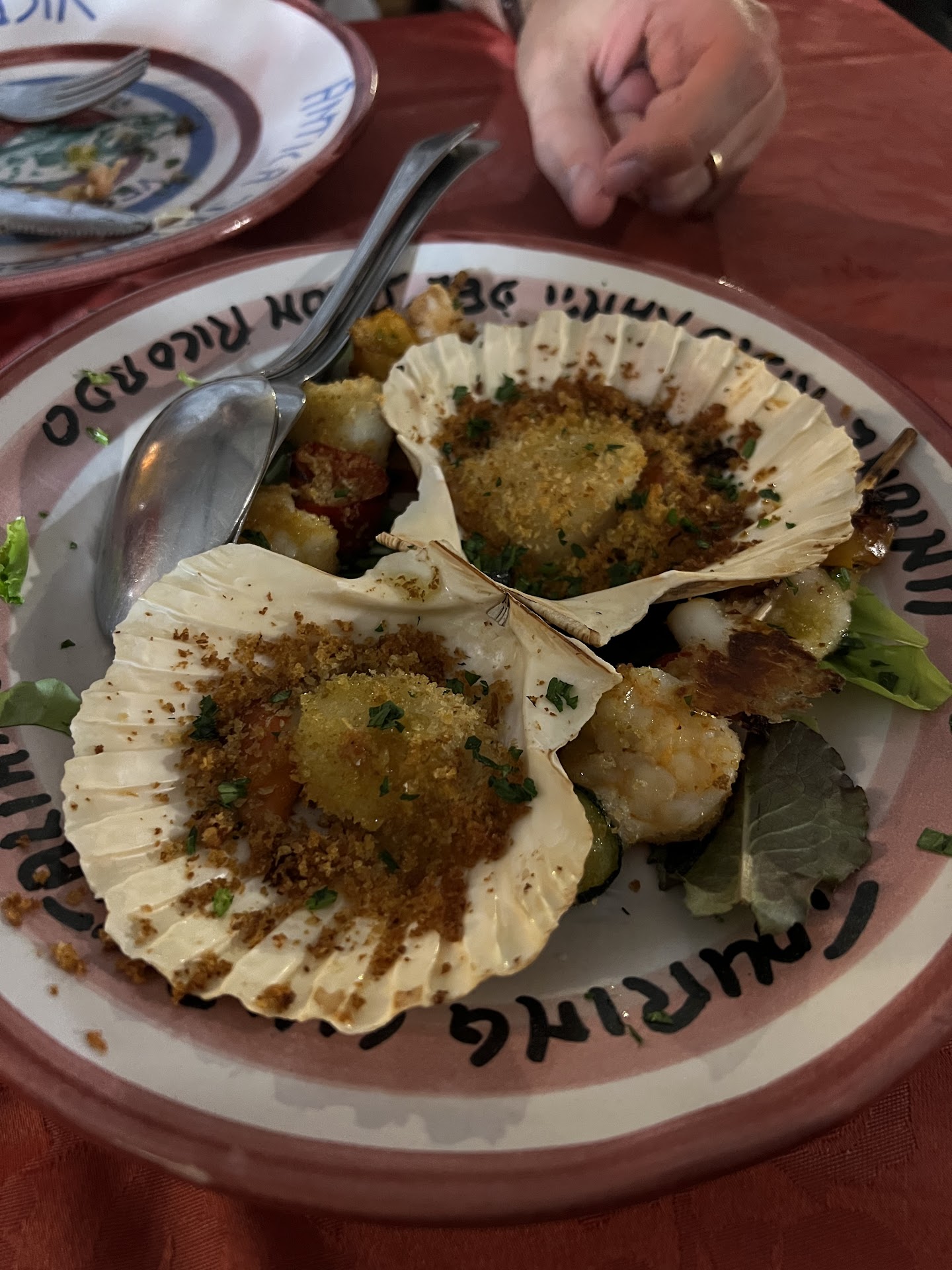 Read moreCi accoglie alla porta la proprietaria, con un sorriso radioso, ci fa accomodare, mi sento come fossi in famiglia, la sala è piccola, l'arredamento è informale, pieno di oggetti e chincaglieria mescolati e ricomposti con la loro storia e il loro fascino. Mi piace molto, si respira un mix tra l'autentico e una forte personalità, esattamente come la padrona di casa. Il servizio in tavola è decorato a mano proveniente da vari luoghi turistici, qualcosa mi ricorda i piatti che acquistavano i miei genitori nei ristoranti locali e che appendevano in taverna ... Qui, sicuramente c'è lo zampino meridionale. Una splendida ragazza dai colori mediterranei ci spiega tutto a voce, non c'è una lista, ci affidiamo a lei scegliendo menù degustazione di pesce, il protagonista della cucina . La caponatina mescolata al pesce, la frittura mista molto dorata e il tipo di pane riconfermano il mio sentore , scopro poi che c'è un influenza sarda. Meraviglioso connubio tra Torricelle e mare. Tutto molto buono, chips fuori menù fulminate, crudi freschissimi, servizio veloce, tavoli purtroppo condivisi ma data l'atmosfera gradevole per nulla fastidiosi e invasivi. Concluso con dolce ed elisir di lunga vita, bevuto il doppio, chissà che sia di buon auspicio per ritornarci ai primi caldi e godere della loro carinissima terrazza...