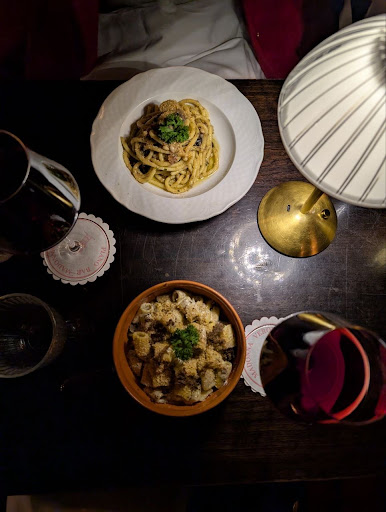 Si vede proprio che Claudio, il titolare, ha investito tanto e ci ha messo cuore e passione per ridare a questo locale storico la luce che si merita. Atmosfera romantica ed elegante, con musica live che non sovrasta, ma che si accompagna con piacevolezza all’ambiente intimo, pieno di dettagli da scoprire e assaporare.
