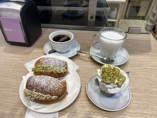 Read moreBrioches buonissime, sembrano quasi di avere la consistenza e il sapore, tra un Pan brioche e un panettone. Possibilità di averle anche da asporto. Possibilità di scegliere tra il ripieno con crema pasticcera, con zabaione, con crema al pistacchio+granella di pistacchi, con crema di nocciole o con classica confettura. Tra i vari gusti le più buone in assoluto, a mio parere, sono quella con la crema ai pistacchi e quella con la marmellata. Prezzo 1,70€ l'una con qualsiasi ripieno. Caffetteria molto buona. Presenti anche tavolini per consumare direttamente al bar. Super consigliato se si è in zona, veramente...