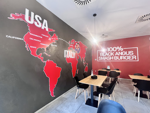 Appena entri nel locale capisci subito che sei in un posto speciale. L’atmosfera è un mix perfetto tra diner americano e stile urban, con mattoni a vista, neon accesi, musica hip-hop e rock anni ’90 che ti carica subito. Ma la vera magia è quando senti l’odore della carne sulla piastra: ti colpisce come un pugno di fame in pieno stomaco.