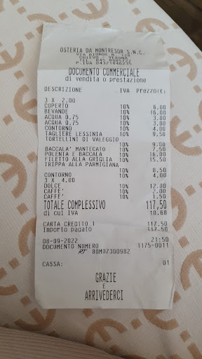 Read morePartiti con l'idea di mangiare le tagliatelle al musso... abbiamo beccato il menù estivo. Poco male, abbiamo fatto altre scelte. Tagliere di Lessinia: gli affettati erano a dir poco spettacolari, si scioglievano in bocca. La giardiniera di produzione propria associata era da urlo, presa come contorno anche dopo. Il formaggio non mi ha esaltato, ma comunque non era male. Sia il baccalà mantecato con la polenta, sia il baccalà alla vicentina erano davvero buoni, il filetto tenerissimo, e la trippa... era da tempo che non ne mangiavo di così buona. Apprezzatissimi anche i tortellini di Valeggio, saporiti. Abbiamo accompagnato con un rosé fresco frizzantino. Ambientazione a mio avviso un po fredda, seggiole in plastica, ma apparecchiatura in stoffa; esterni dove grazie al cielo non ha fumato nessuno; posto accanto alla ferrovia, ma con ampi parcheggi di fronte al locale. Servizio cortese ma a mio avviso un po troppo confidenziale: siamo over 50 e se diamo del lei, ci fa piacere che altrettanto accada dall'altra parte. Abbiamo preso in tte due antipasti, un primo, tre secondi, due contorni, tre dessert, caffè, due acque e una bottiglia di rosato, a poco meno di 40 euro a testa. Soddisfattissimi, ci torneremo...
