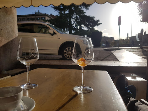 Read moreLovely position overlooking pizza San Tomaso just across the river over Ponte Nuovo. Outside is a sun trap under the arches with lots going on for people watching, sit on the steps or funky wooden seating. Fantastic selection of local wines from €2 a glass - the lovely bar staff will help you decide. Great selection of lunch snacks foccacia and other breads/sandwiches. We popped in for a light lunch, ended up staying till sunset... Happy vibes...
